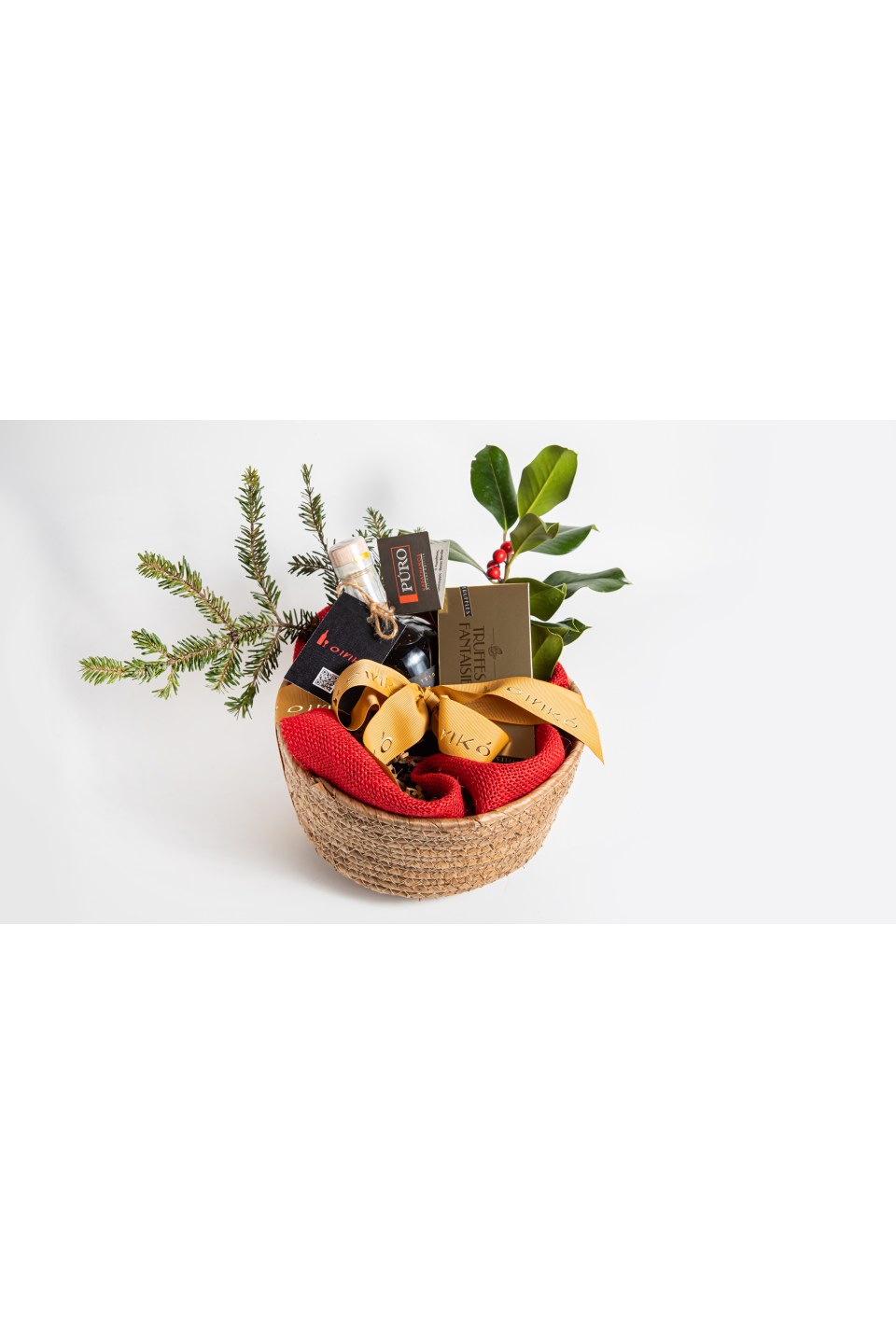 Ψάθινο πανέρι με παλαιωμένο τσίπουρο και τρούφες κακάο