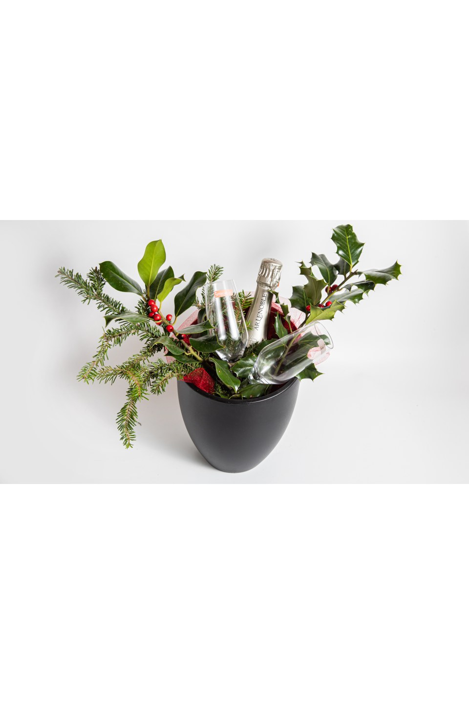 Σαμπανιέρα με μία φιάλη σαμπάνιας και ποτήρια